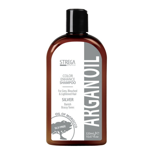 Strega Color Enhance Silver Shampoo gently yet effectively cleanses hair and scalp. Preserves and revives cool tone directions. Neutralizes unwanted warm undertones and brassy tones.
